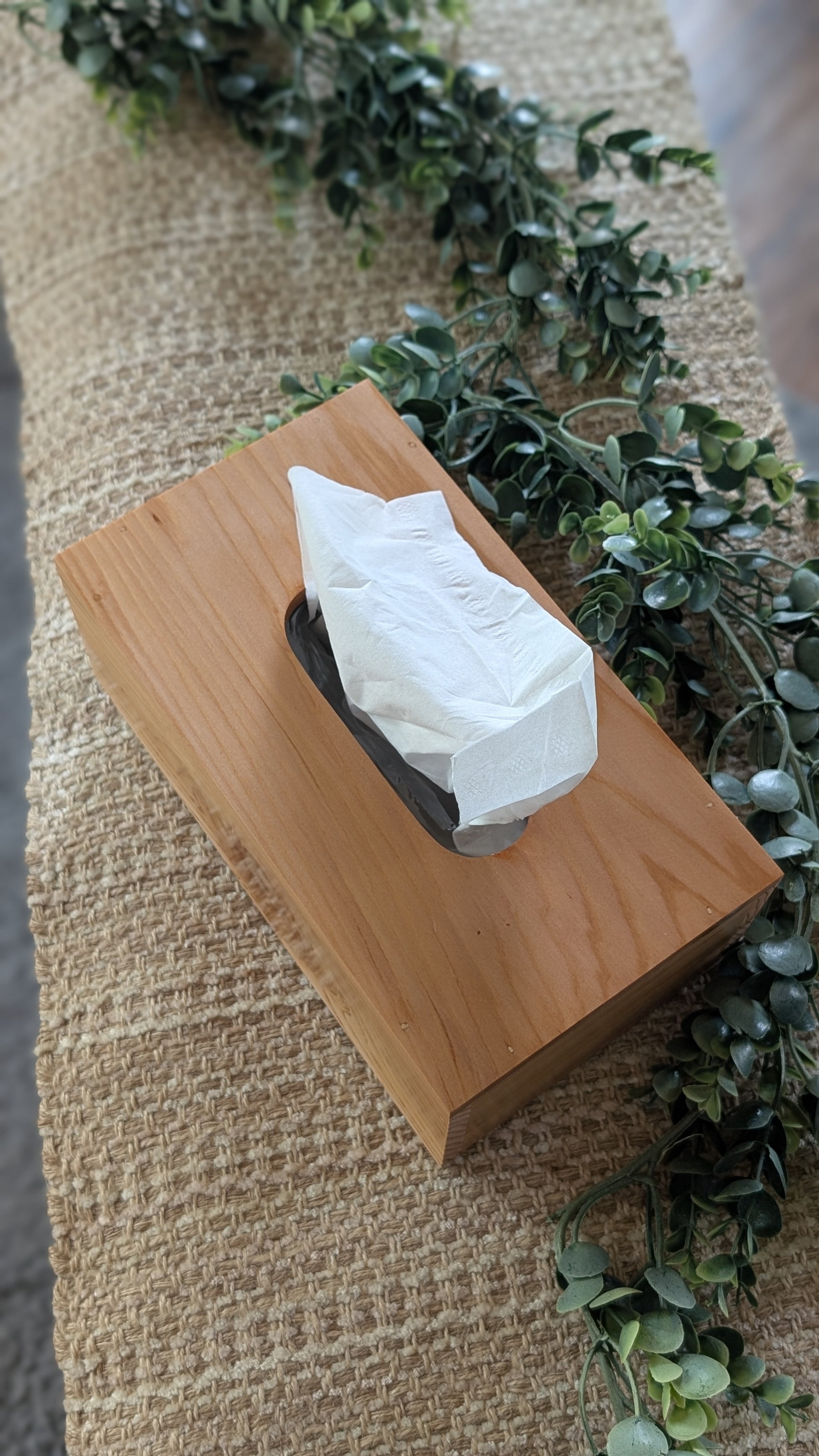 Whether you’re adding a cozy touch to your living room or enhancing your bathroom decor, our cedar tissue box covers blend functionality with natural beauty. A great gift for cabin lovers or those who appreciate handmade, eco-friendly designs. It has been stained with a warm gloss polyurethane.