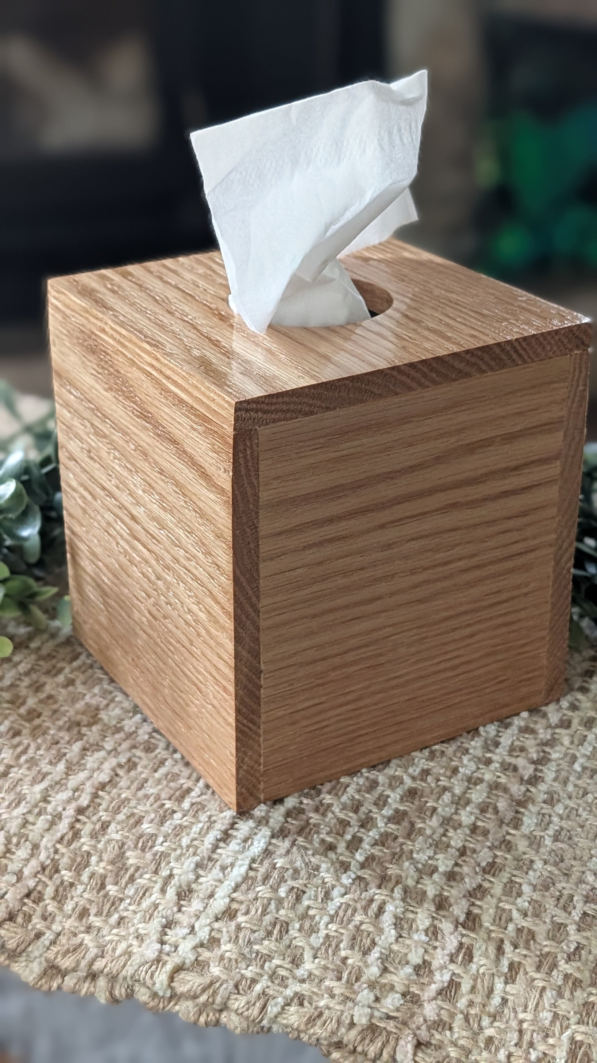 Bring bold texture and classic character to your home with our Red Oak Cube Tissue Box Cover, handcrafted with care in Northern Michigan by The Carpentry Cabin LLC. Made from solid red oak, this cover features a distinctive open grain pattern and warm, earthy tones that add strength and style to any space.